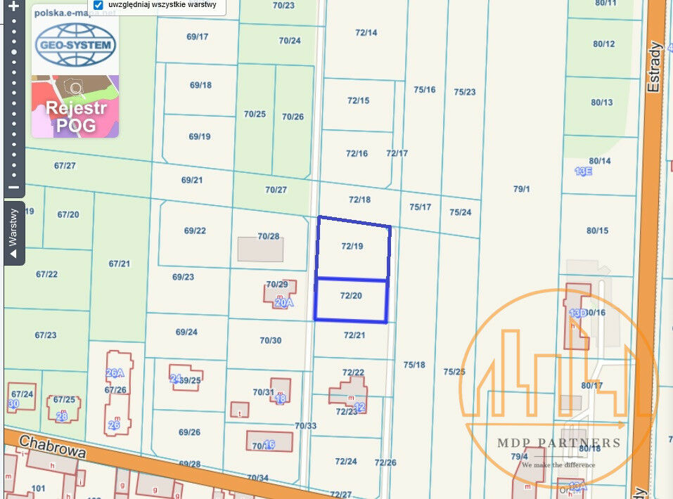 **Cena zawiera udziały w działce drogowej: 72/26, 72/25 wraz ze służebnością przejazdu przez działki 72/22, 72/21.